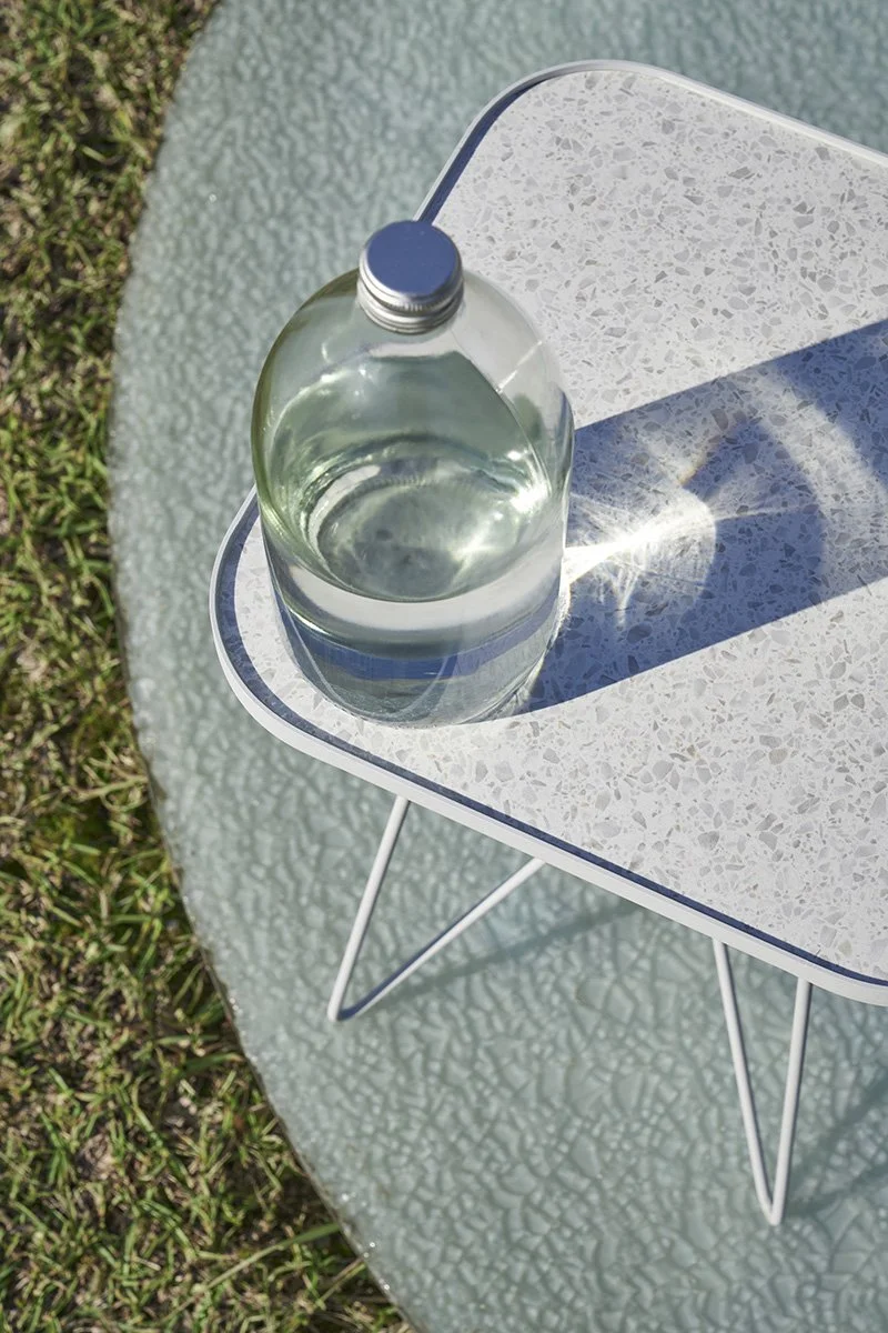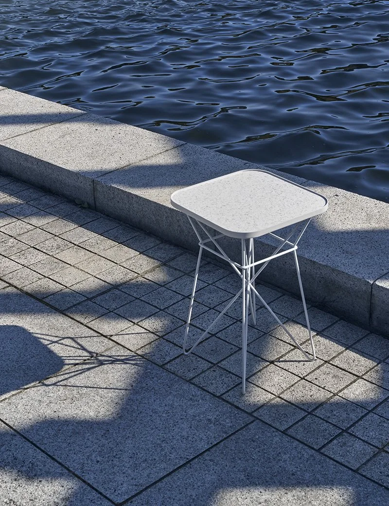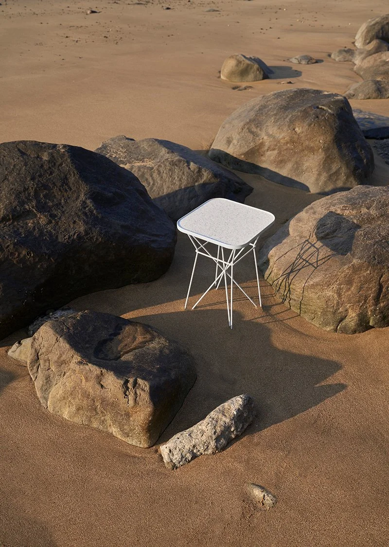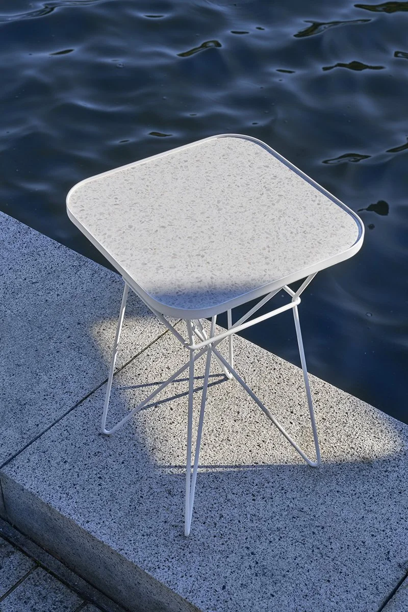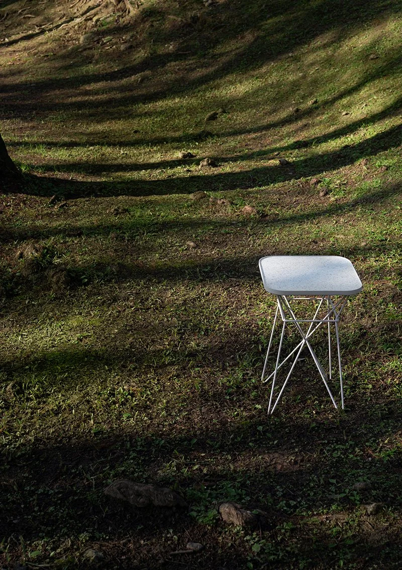 Icy terrazzo surface is a unique life memory of Taiwan. D LINE combines clean and smooth rectangular tabletop with round corners and premium Italian terrazzo tile to exhibit a rustic and primitive character, forming with the slick lines of the metal legs trendy aesthetics woven by modern and vintage styles.